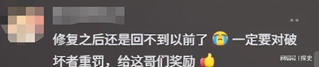 网友看到“破坏前-破坏后-修复后”的对比图后,纷纷点赞:“一边是破坏,一边是修复。一边是炫耀,一边是奉献,这差别太明显了。”