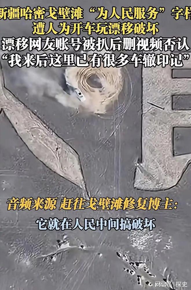 鲁中晨报,2025-10-16,“为人民服务”标语被破坏,哈密市文旅局回应:进入戈壁滩漂移的车主已找到,将对标语申报文物认定